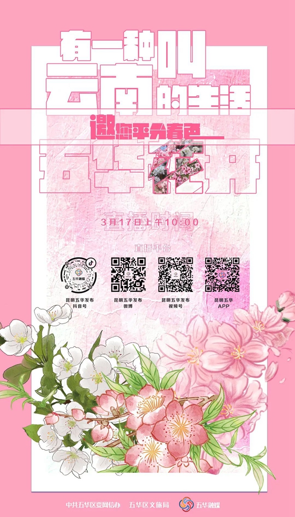 3月17日上午10時(shí),與五華一起,以直播的方式共赴一場(chǎng)春日花事,感受“三位主播+三個(gè)地點(diǎn)>6”的浪漫,一起平分春色,一起“追花”。