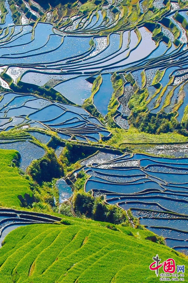 紅河哈尼梯田是以哈尼族為主的各族人民利用特殊地理氣候同墾共創(chuàng)的梯田農(nóng)耕文明奇觀,規(guī)模宏大,氣勢磅礴。主要分布在紅河州元陽、紅河、金平、綠春等縣。1300多年來,勤勞智慧的哈尼族人用一鋤一簍、一犁一耙把巍巍大山雕刻成精美的藝術(shù)品,以千變?nèi)f化的絕美姿態(tài)驚艷著世界。(杜浩楠)