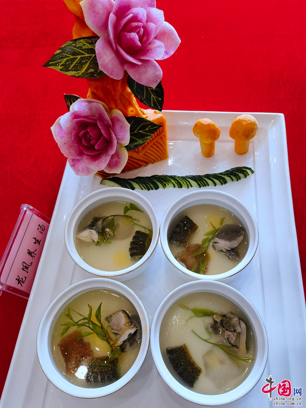 選取本地原生態(tài)公雞、鱔魚,搭配牛肝菌、甜菜,隔水燉即可。