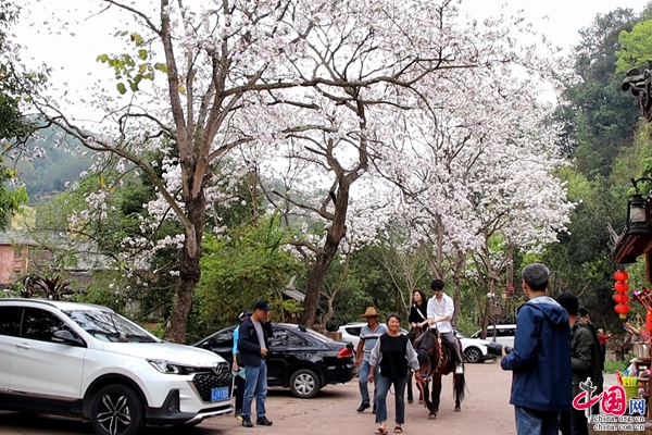 “推窗見青山,憑欄聽流水,古道蹄聲響,入夢那柯里?!泵磕耆脑拢强吕锊桉R古道小鎮(zhèn)便迎來白花盛開的美景,青山、農(nóng)舍、小屋在白花的映襯下,像一幅古典山水畫,有了別樣的風(fēng)姿,吸引了大量游人賞春景、吃春花。