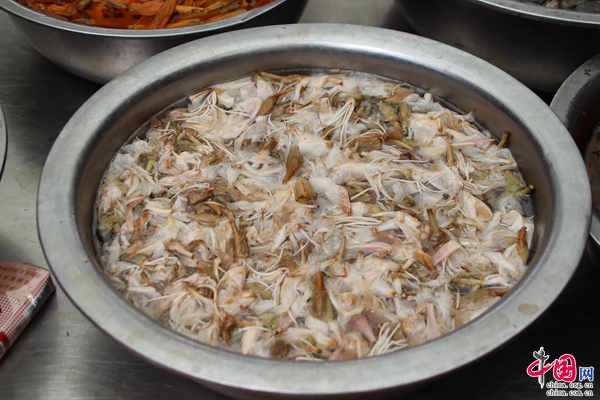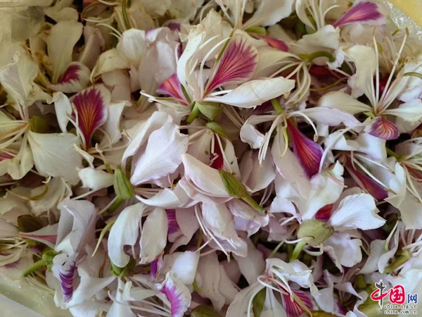 白花,又名白花羊蹄甲、白花洋紫荊,是普洱本地一種可觀賞、可使用的花,常被用于制作馬幫菜。涼拌白花、白花炒豆豉、白花炒臘肉、白花煮蠶豆…焯水漂洗后的白花,經(jīng)過烹飪便成“舌尖上的春天”。