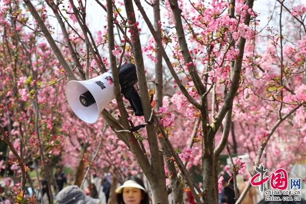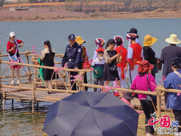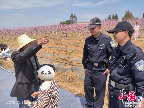 在大理州祥云縣,今年舉辦了首屆新興苴桃花節(jié)?,F(xiàn)場人頭攢動,萬名游客陶醉在花海,觀賞著百畝桃花和文藝表演,載歌載舞歡慶節(jié)日。祥云縣公安局組織警力加強巡邏防控和隱患排查,全力消除火災(zāi)、道路交通安全等隱患,維護(hù)會場秩序,為游客營造一個放心、安全的觀賞環(huán)境。