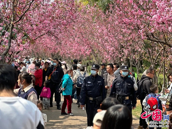 三月,云南的鮮花陸續(xù)開放,趁著賞花的好時節(jié),各地相繼舉辦文化旅游節(jié)、賞花會、花海音樂節(jié)等活動,吸引游客前來踏春賞花。云南各地公安機關(guān)科學(xué)調(diào)派警力,做好隱患排查、巡邏防控、交通疏導(dǎo)等安保工作,既守護(hù)好轄區(qū)美景,也守護(hù)好來踏春賞花的游客,通過營造安全、和諧的轄區(qū)環(huán)境,扛牢護(hù)航經(jīng)濟(jì)發(fā)展職責(zé)任務(wù),以高水平安全保障高質(zhì)量發(fā)展。
