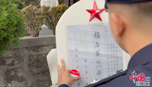 “老前輩,我?guī)е降軅兛茨銇砹耍 鼻迕鞴?jié)前夕,保山烈士陵園,剛剛榮獲第二屆十大國門衛(wèi)士的保山邊境管理支隊執(zhí)法調查隊隊長安曉華在這里見到了許久“未曾謀面”的前輩——楊占軍。安曉華師徒一行四人在烈士墓前久久站立不愿離去,手中捧著的,是今年年初剛獲評的集體一等功獎章。