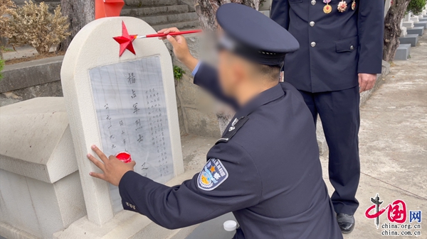 伴隨著車窗外一路陽光的照耀,安曉華一行四人很快來到烈士陵園,在犧牲戰(zhàn)友楊占軍墓碑前,安曉華帶領著徒弟們低頭默哀,獻上黃菊花,并在獲得園方同意后,讓徒弟們用提前準備好的毛筆和顏料輪流給烈士的墓碑描紅,只為讓徒弟們跟隨英烈足跡,傳承英雄精神,在新征程上砥礪前行。