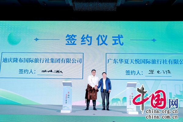 現(xiàn)場(chǎng),云南文旅推介官作“有一種叫云南的生活”主題推介;昆明、普洱、大理、麗江、迪慶五個(gè)州市分別作文旅項(xiàng)目招商推介;迪慶隆布國(guó)際旅行社集團(tuán)有限公司與廣東華夏天悅國(guó)際旅行社有限公司進(jìn)行簽約。