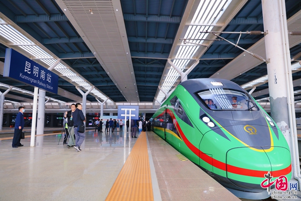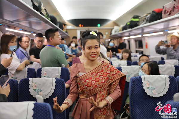 4月13日,中老鐵路國(guó)際旅客列車(chē)正式發(fā)車(chē),全程經(jīng)停昆明南、普洱、西雙版納、磨憨、磨丁、瑯勃拉邦、萬(wàn)榮、萬(wàn)象8個(gè)車(chē)站,單向行駛時(shí)長(zhǎng)為十個(gè)半小時(shí)。