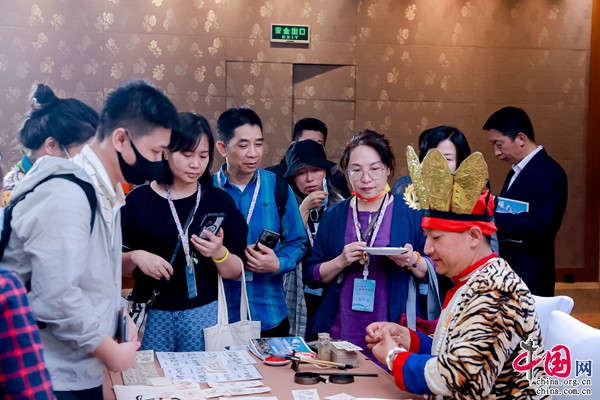 東巴文化展臺前排起了長隊,東巴文化傳承人和華強正一筆一畫地用東巴文給大家書寫祝福語、生肖和姓名?!皷|巴文是納西東巴文化頗具代表性的重要內(nèi)容之一,是人類唯一還在書寫和使用的一種象形文字。2003年,由東巴文字書寫的東巴古籍被聯(lián)合國教科文組織列入了世界記憶遺產(chǎn)名錄?!焙腿A強表示,小小的一張紙卻承載著悠久的文化傳承,希望大家能認識、了解、愛上東巴文化,吸引更多游客走進麗江。