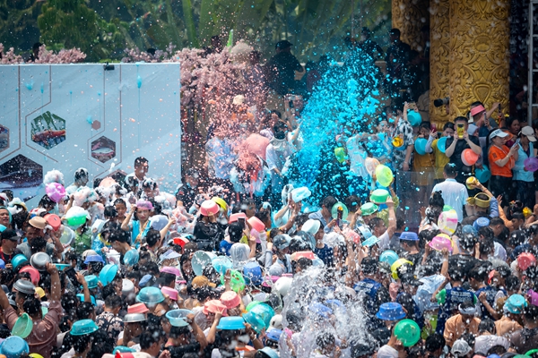 日前,云南省西雙版納州勐臘縣2023年潑水狂歡節(jié)(傣歷1385年新年節(jié))電音潑水狂歡暨南臘新區(qū)第三屆彩虹潑水節(jié)撒歡開“潑”,大地飛灑幸福水花,萬人共慶潑水狂歡。