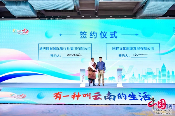 推介會上,云南文旅推介官作“有一種叫云南的生活”主題推介,昆明、普洱、大理、麗江、迪慶五個州市分別作文旅項目招商推介,迪慶隆布國際旅行社集團有限公司與同程旅行進行簽約。