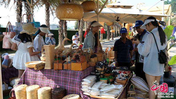 漫步在文創(chuàng)集市上,傳統(tǒng)文化的氤氳氣息撲面而來,琳瑯滿目的產(chǎn)品展示著本土民族民俗文化和精湛的手工藝,充分顯現(xiàn)著壯族、彝族等民族文化的魅力。無論是壯族織錦、竹編展示,還是“綁神猴”系列文創(chuàng)作品,都讓游客紛紛駐足欣賞。