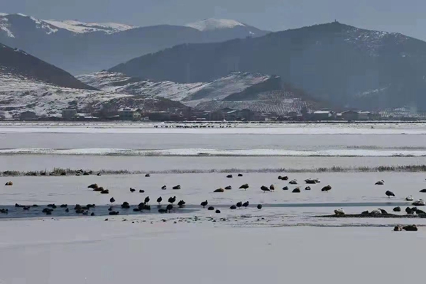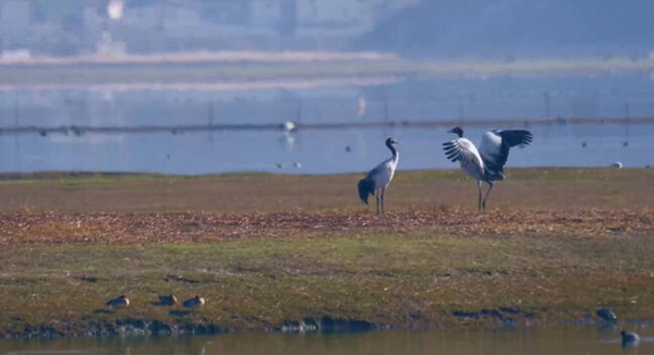 除了草原湖泊,到了深秋隆冬,高原仙子黑頸鶴及其它鳥類都會(huì)到納帕海濕地遷徙越冬。