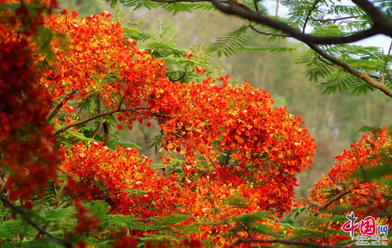 (景東縣鳳凰花壓滿枝頭 孫國(guó)章攝)