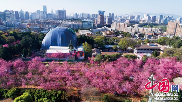 “圓通櫻潮”是昆明最熱門的景觀。每當(dāng)陽春3月,北面上下三塊櫻花區(qū)內(nèi),數(shù)千株云南櫻花、日本櫻花和垂絲海棠竟相開放,紅白交映、燦若霞海。