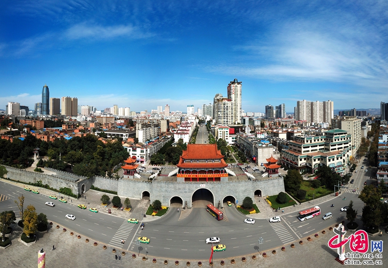 曲靖作為爨文化的發(fā)祥地,連續(xù)多年被評(píng)為宜居城市,雖然隨著社會(huì)發(fā)展下的新舊替換,萬丈高樓“破土而出”,取代了舊時(shí)樓宇格局,但曲靖依舊保持著一方古樸素雅。明代的曲靖是一座磚城,設(shè)有4道城門,東門叫“樂耕門”,南門叫“來薰門”,西門叫“勝峰門”,北門叫“迎恩門”,日新月異間幾個(gè)城門都漸漸消失在街道中,僅剩南城門還留有舊址。1997年7月南城門在原址東150米的老城埂上復(fù)建竣工,樓臺(tái)均為飛檐蹺閣宮殿式建筑,分主樓和東西二樓各有300平方米;三、四樓4壁雕刻有“紅樓夢(mèng)”大型連環(huán)浮雕334幅,四、五樓適合登高遠(yuǎn)眺,能將曲靖美景盡收眼底。