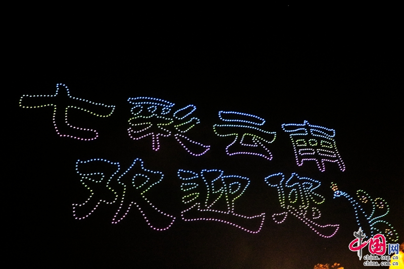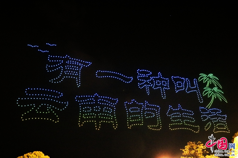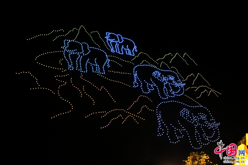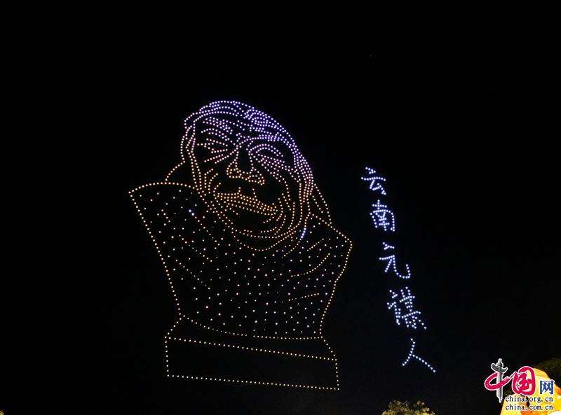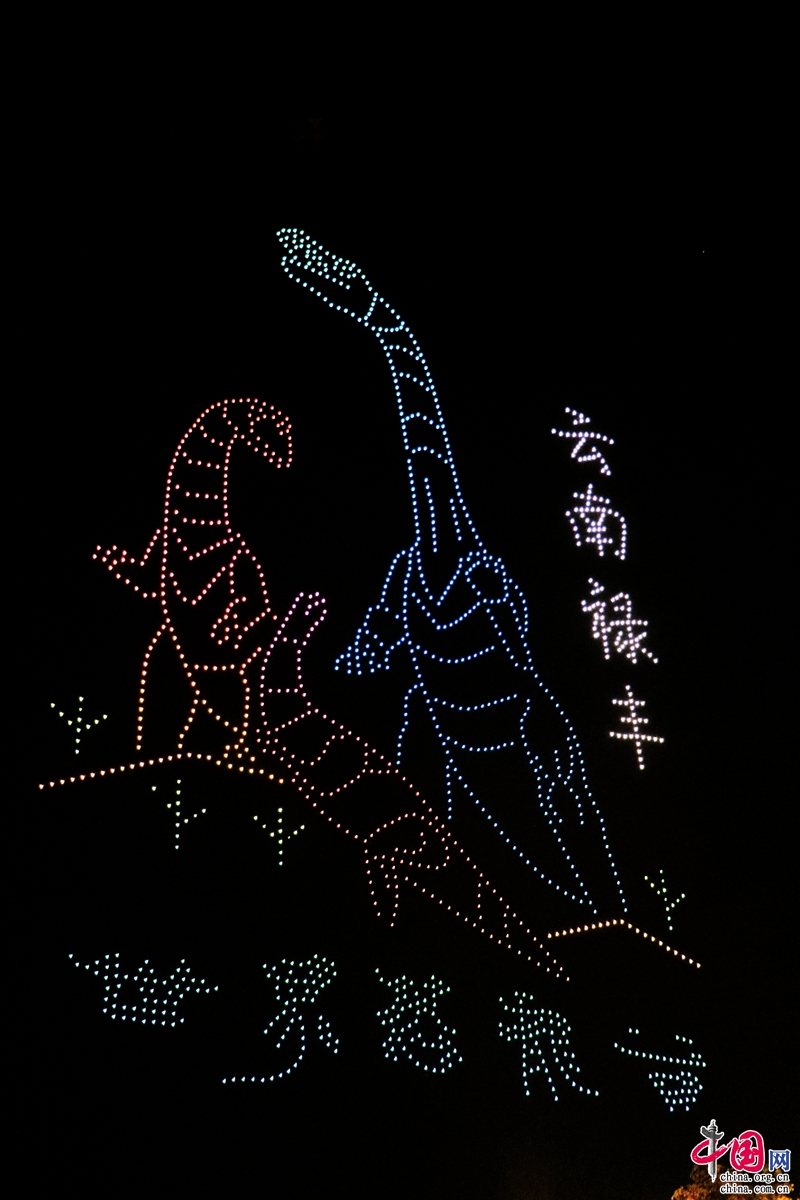 夜幕下,無人機組成了“5·19中國旅游日”“美好中國 ·幸福旅程”“有一種叫云南的生活”“七彩云南歡迎您”等文字及和順古鎮(zhèn)、云南亞洲象群北移南歸、潑水節(jié)、元謀人、玉龍雪山、綠孔雀、祿豐恐龍等圖案,惟妙惟肖、動感十足的動作讓許多市民駐足觀看。(楊婧瑤)