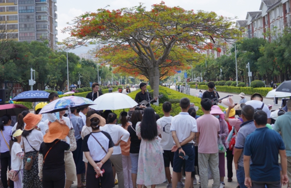 一大早,這些普洱人都帶著自己的愛來到了石龍路的鳳凰花下。