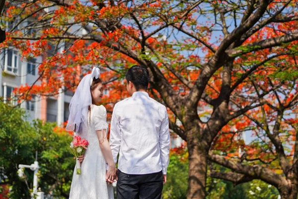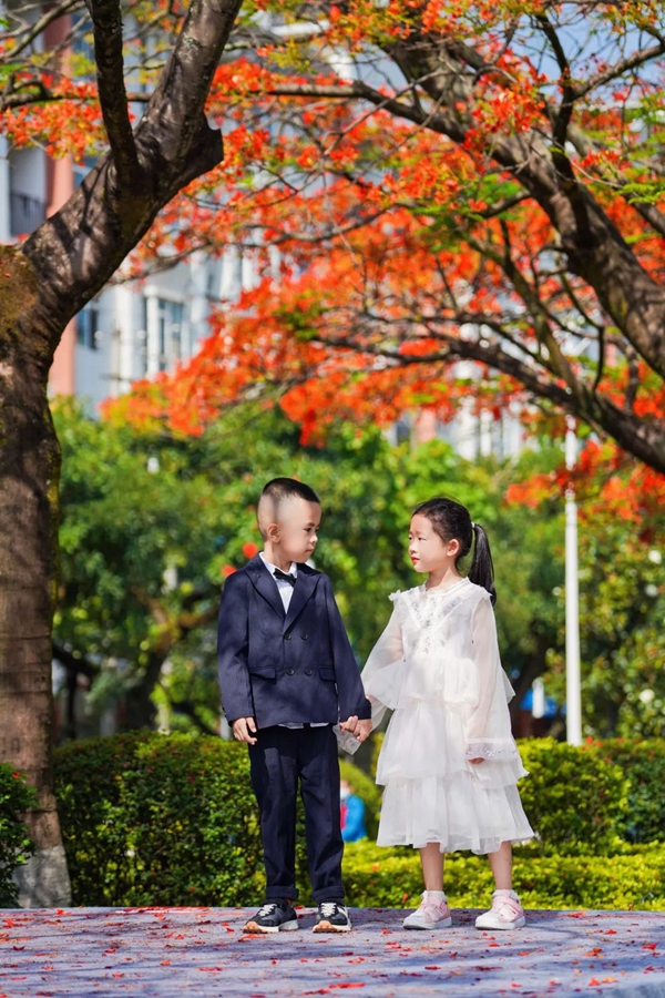 伴隨著陣陣的花香瓣雨,在鳳凰花下,說出埋藏心底許久的話語:我愛你,一生一世!