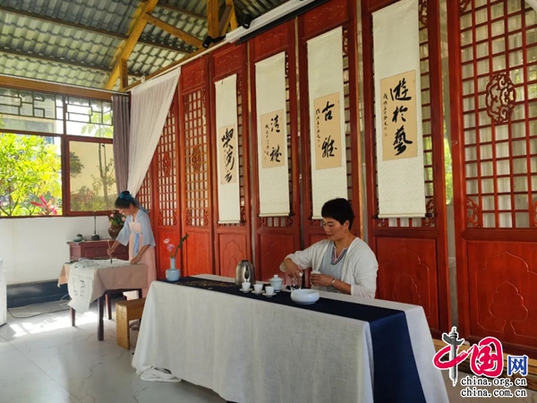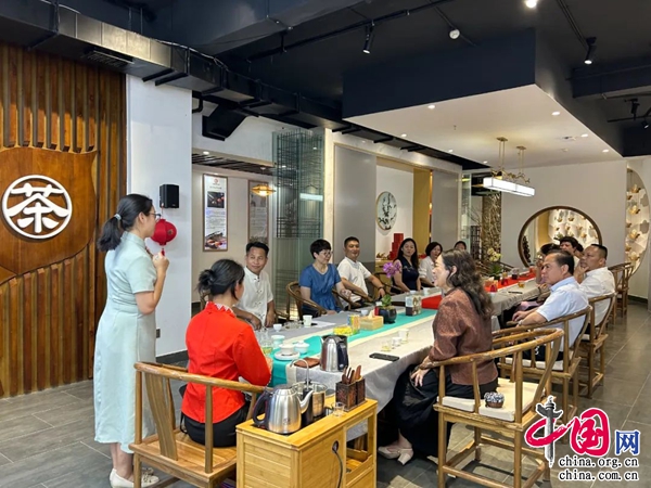 活動現(xiàn)場,20余名普洱茶愛好者們相聚于此,通過制茶技藝、泡飲技巧展示,現(xiàn)場評茶、品茶,茶葉知識競答等形式,品茶談心,以茶會友,分享和交流普洱茶知識,展現(xiàn)普洱茶特色,共同助力普洱茶文化的傳播與推廣。茶藝師們?yōu)楝F(xiàn)場嘉賓撫琴、吟唱、作畫,在優(yōu)雅的琴聲中以茶為媒,開啟一場可觸、可觀、可賞、可品的茶文化交流體驗。