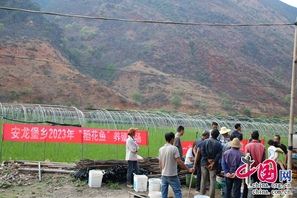 近年來(lái),安龍堡鄉(xiāng)因地制宜發(fā)展種養(yǎng)結(jié)合的特色農(nóng)業(yè),充分利用綠汁江沿岸得天獨(dú)厚的低熱河谷氣候條件,推廣“魚稻共作”特色種養(yǎng)模式,在說全村委會(huì)法克村一帶推廣稻花魚示范養(yǎng)殖,宣傳發(fā)動(dòng)群眾開展稻田養(yǎng)魚,邀請(qǐng)農(nóng)技專家對(duì)稻田養(yǎng)魚農(nóng)戶開展綜合養(yǎng)殖技術(shù)培訓(xùn)服務(wù),探索立體式種養(yǎng)模式,帶動(dòng)群眾有效增收。