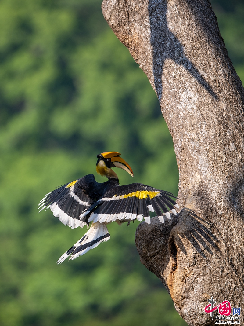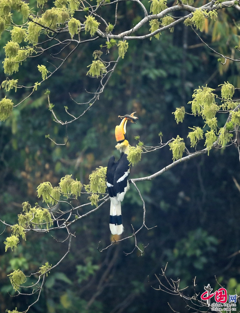 犀鳥是熱帶雨林的旗艦物種,眾所周知我國總共有5種犀鳥,它們分別是雙角犀鳥、花冠皺盔犀鳥、冠斑犀鳥、棕頸犀鳥和白喉犀鳥。云南省德宏州是中國唯一同時有5種犀鳥分布的地區(qū),在盈江縣的熱帶季雨林里雙角犀鳥、花冠皺盔犀鳥和冠斑犀鳥不僅分布穩(wěn)定而且有相對固定的繁殖巢穴。