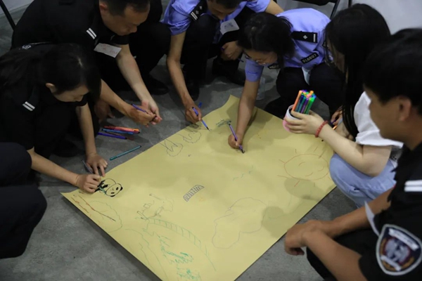 在老師的帶領(lǐng)下,參與活動的民警、輔警組隊進(jìn)行“團(tuán)結(jié)在一起”小游戲,大家配合默契、共同協(xié)作,在積極參與游戲的過程中舒緩情緒、釋放壓力。再以“任務(wù)達(dá)人PLUS”游戲?qū)⒒顒油葡蚋叱?,成員間熱烈討論、不斷嘗試,齊心協(xié)力完成挑戰(zhàn)。