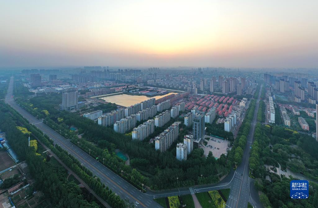 晨光中的滄州市區(qū)(5月16日攝,無人機(jī)照片)。