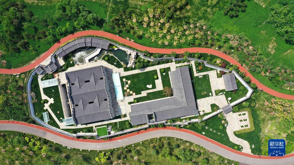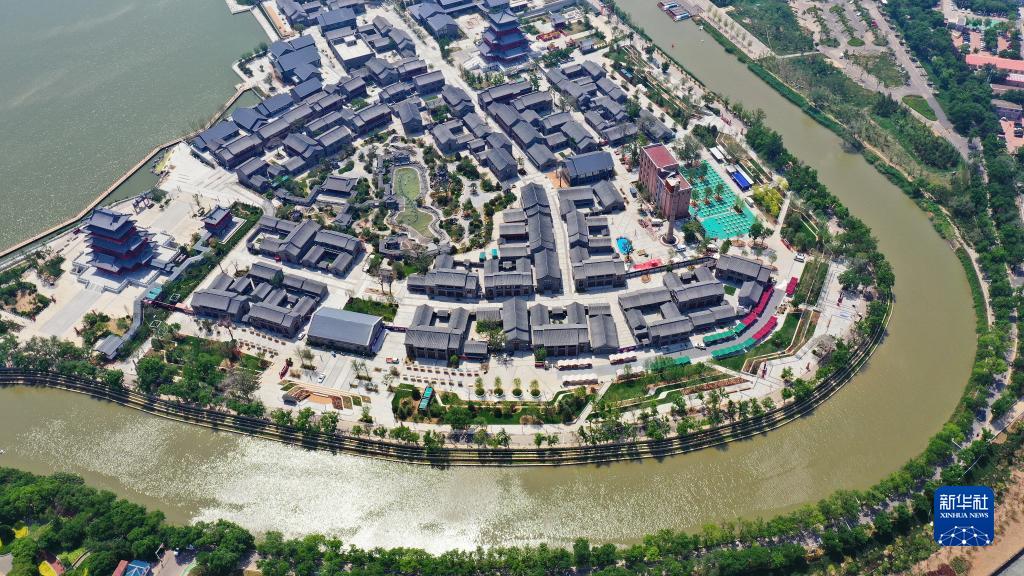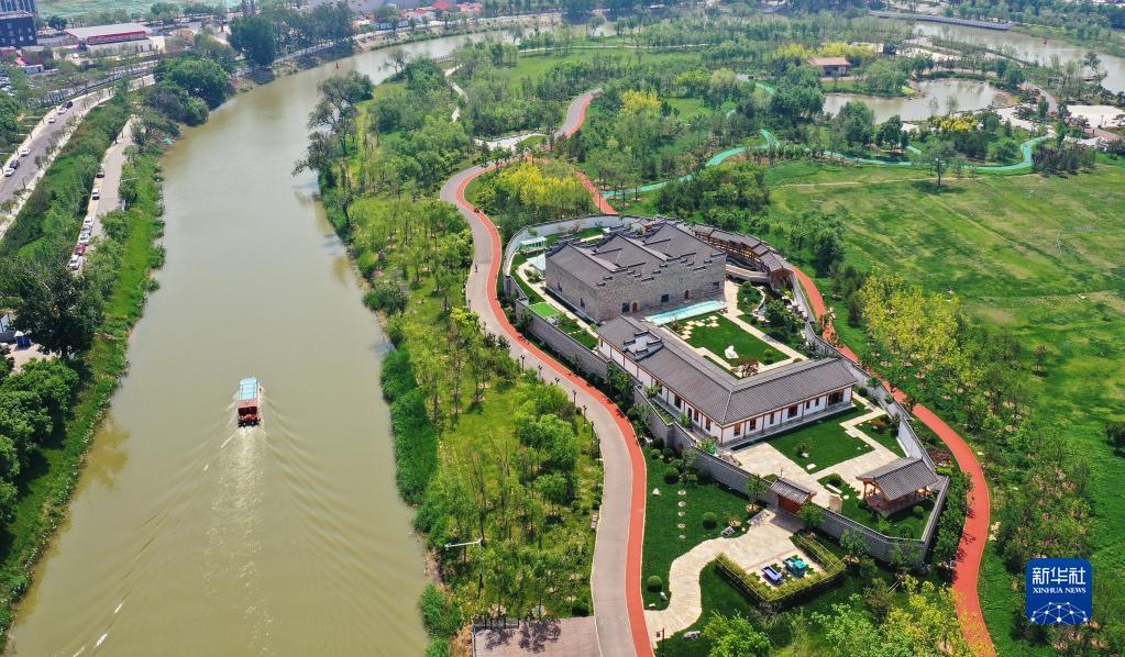 滄州市京杭大運(yùn)河畔的滄曲書舍(5月16日攝,無人機(jī)照片)。