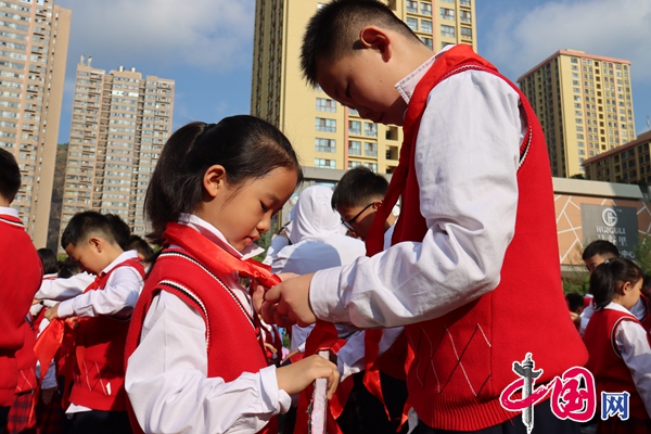 “我們是共產(chǎn)主義接班人,繼承革命先輩的光榮傳統(tǒng),愛祖國愛人民,鮮艷的紅領(lǐng)巾飄揚(yáng)在前胸......”5月31日上午,隨著激昂的《中國少年先鋒隊(duì)隊(duì)歌》響起,昆明市五華區(qū)武成小學(xué)教育集團(tuán)海源小學(xué)開啟了“學(xué)習(xí)二十大 爭做好隊(duì)員”新生入隊(duì)儀式暨“六一”藝術(shù)展演活動(dòng)。