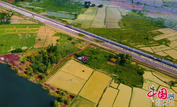 (“瀾滄號(hào)”動(dòng)車(chē)組列車(chē)運(yùn)行在老撾境內(nèi) 楊永全/攝)