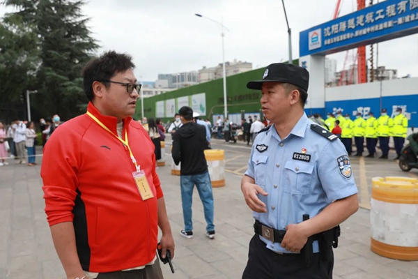 分局執(zhí)勤民警、輔警協(xié)助交警對(duì)考點(diǎn)附近部分路段合理設(shè)置禁行區(qū),采取臨時(shí)交通管制,勸導(dǎo)亂停亂放車輛,保障考點(diǎn)附近交通安全、暢通、有序。