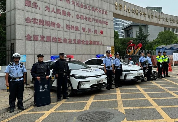 高考期間,為確保考試安全、有序、順利進(jìn)行,考點(diǎn)安保執(zhí)勤警力提前到崗到位,對(duì)考點(diǎn)及周圍開展定點(diǎn)執(zhí)勤和武裝巡邏,快速處置各類緊急突發(fā)情況,確保考場(chǎng)周邊秩序井然。
