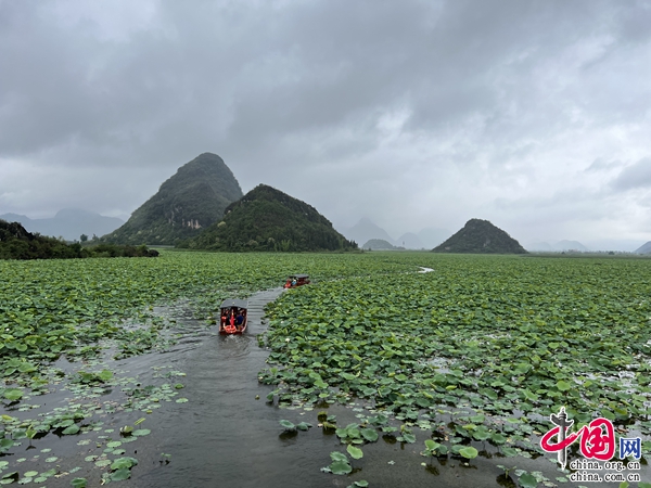 此時(shí)此刻的普者黑,如“接天蓮葉”“映日荷花”,綻放出了更加絢麗、更加迷人的色彩。(姚敏)