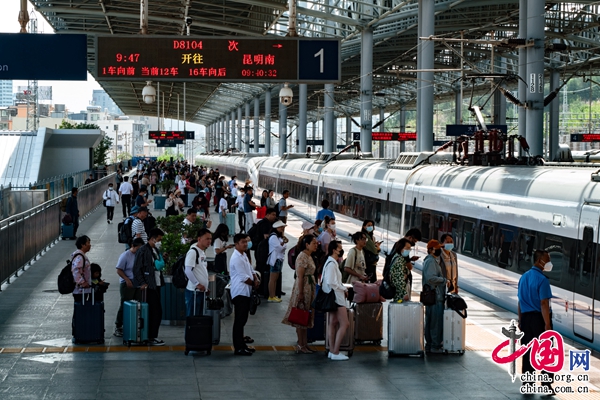 2018年7月1日,昆楚大麗線建成通車(chē),和諧號(hào)動(dòng)車(chē)組以風(fēng)一般的速度奔馳在滇西大地上,昆明到大理的列車(chē)運(yùn)行時(shí)間由6小時(shí)縮短至1小時(shí)52分鐘,由鐵路串聯(lián)楚雄、大理、麗江等熱門(mén)旅游城市的滇西旅游黃金線漸成。5年來(lái),依托動(dòng)車(chē)組安全、正點(diǎn)、便捷、綠色的交通優(yōu)勢(shì),實(shí)現(xiàn)與省會(huì)城市“兩小時(shí)經(jīng)濟(jì)圈”的交通跨越,大理站以服務(wù)經(jīng)濟(jì)社會(huì)發(fā)展、助推文旅升級(jí)換擋的擔(dān)當(dāng)和作為為這座滇西名城又增添了一抹亮色。
