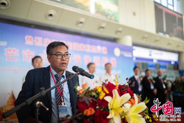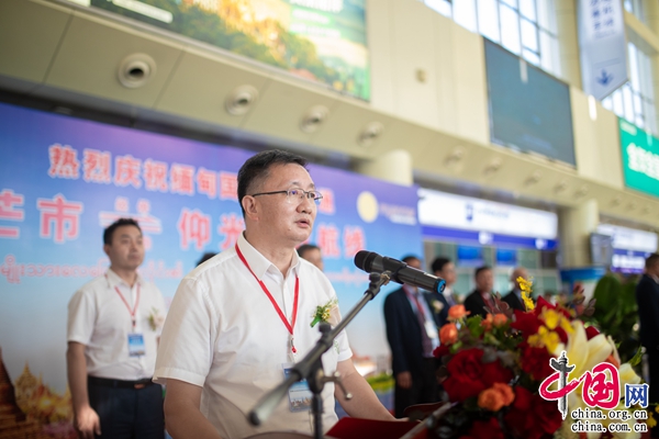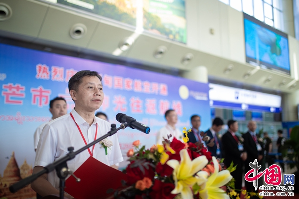 (德宏州委副書記、州長衛(wèi)崗在首航儀式上致辭,楊立/攝)