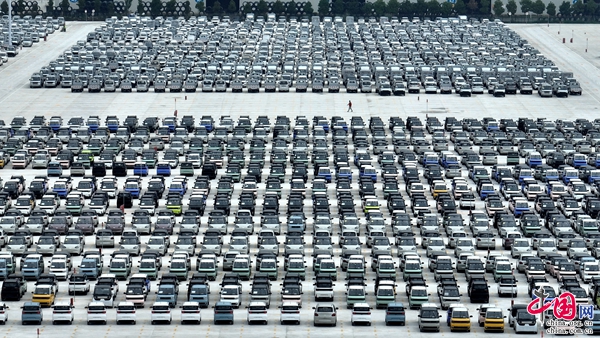 (基地內(nèi)擺滿各種品牌的商品汽車。陳暢/攝)