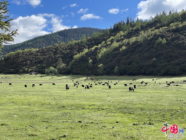 在屬都湖和碧塔海之間的彌里塘高山牧場,迎面而來的微風,帶來青草清香和山野間野花的芬芳,胸中煩躁之氣隨微風傾泄而出。賞完草甸牛羊,還可以在碧塔海聆聽叮咚溪水之聲,湖畔四周,被群山環(huán)繞的碧塔海綠蔭成片,仿佛置身秘境,不僅將夏日暑氣一消而散,還將城市喧囂拋之腦后,真正由內(nèi)而外感受到清涼勝境帶來的美好。