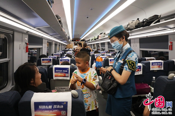 中老鐵路自北向南串起中國西雙版納、老撾瑯勃拉邦等“明珠”,是縱貫中國與東南亞的黃金旅游通道。今年以來,乘坐中老鐵路動車跨境出行和觀光旅游,成為更多人的美好愿望和出行選擇。鐵路部門科學(xué)分析客流變化,動態(tài)調(diào)整運(yùn)力投放,豐富客運(yùn)產(chǎn)品供給,精準(zhǔn)實施“一日一圖”,適時采取動車組重聯(lián)、滿圖開行動車組列車等舉措,較好滿足了旅客出行需求;優(yōu)化站車服務(wù)舉措,采取“三語”問詢服務(wù)、懸掛“五色中國結(jié)”等方式,積極為旅客營造溫馨出行環(huán)境。
