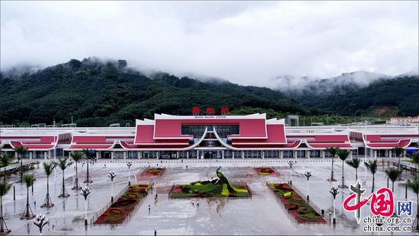 磨憨站位于云南省西雙版納傣族自治州磨憨經(jīng)濟(jì)開發(fā)區(qū),是矗立在中(國)老(撾)邊境、中老鐵路全線最大的車站。每天,磨憨站列車川流不息,人員頻繁來往,一派繁忙景象。特別是今年4月13日中老鐵路國際旅客列車開行以來,已有53個國家和地區(qū)的5.3萬名旅客乘坐動車從磨憨站實現(xiàn)跨境旅行。