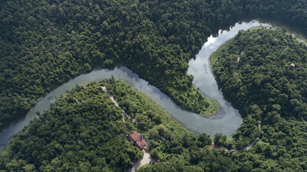 南臘河蜿蜒穿過景區(qū),山間的茶色彎流踏過山壑盡情地流淌,浮浪則如跳躍的音符,奔流在密林中,更顯熱帶叢林的喧鬧。截流南臘河所形成的望天湖,山青水深。從喧鬧到安靜,只需待到水面開闊之時。到這里,游人們的船舶真正駛?cè)肓送鞓涞念I(lǐng)域。