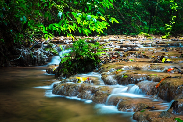 西雙版納國家公園望天樹景區(qū)位于云南省西雙版納傣族自治州勐臘縣內(nèi),是一個從水、陸、空全方位觀賞并體驗熱帶雨林的大型森林生態(tài)旅游景區(qū);景區(qū)地質(zhì)地貌以侵蝕中山峽谷地貌為主,地勢兩側(cè)高中間低,處于呈蝶狀分布的自然保護區(qū)的中間地帶,海拔高度在673~800米之間。地貌與水體的結(jié)合,形成了許多美麗的半島和島嶼。