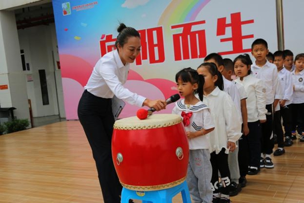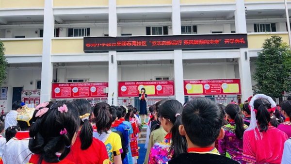 馬街中心學(xué)校在春雨分校舉行了以“向陽而生,追光不止”為主題的開學(xué)典禮。老師們?yōu)槊總€(gè)進(jìn)校的孩子發(fā)一顆糖,寓意“學(xué)習(xí)棒棒、身體棒棒”,典禮中有歌舞表演,老師們?yōu)楹⒆觽冎焐皢⒅?,意為開啟智慧,孩子們擊鼓明志。