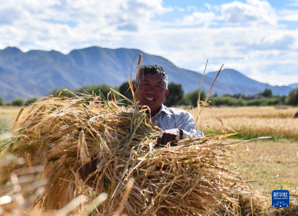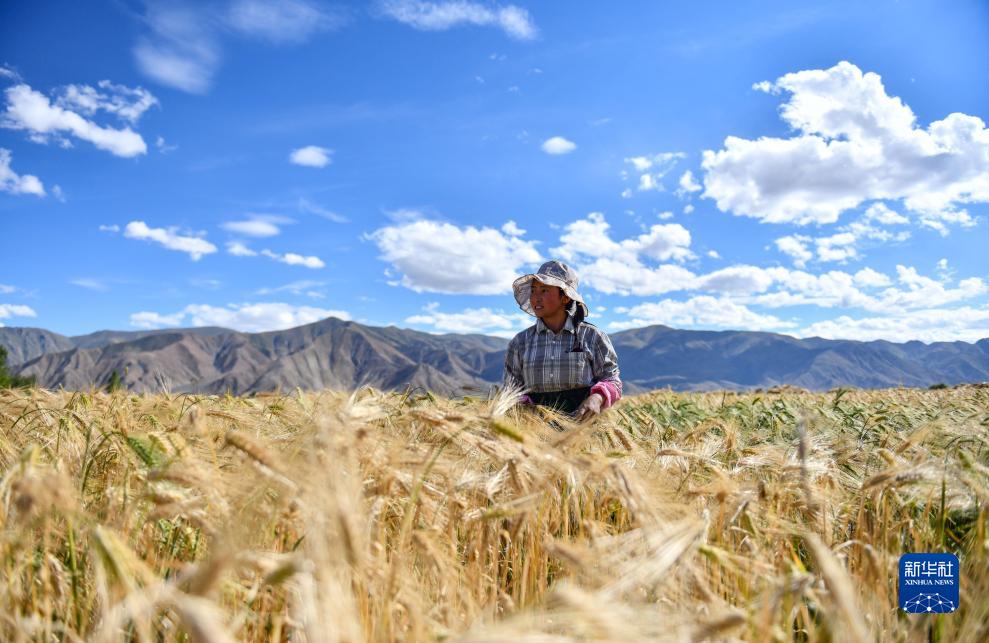 西藏日喀則市年楚河流域是西藏糧食的主產(chǎn)區(qū)之一,今年雨水豐沛,糧食長勢喜人,大地鋪金,農(nóng)民喜迎豐收。新華社記者晉美多吉攝