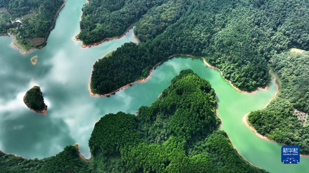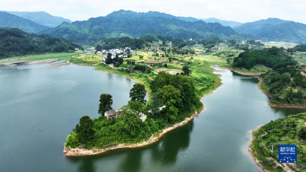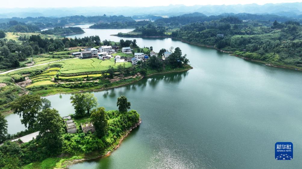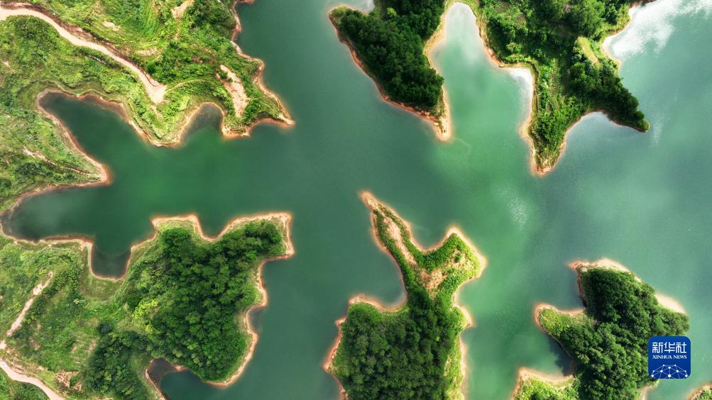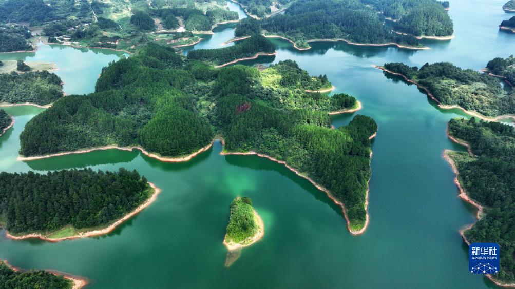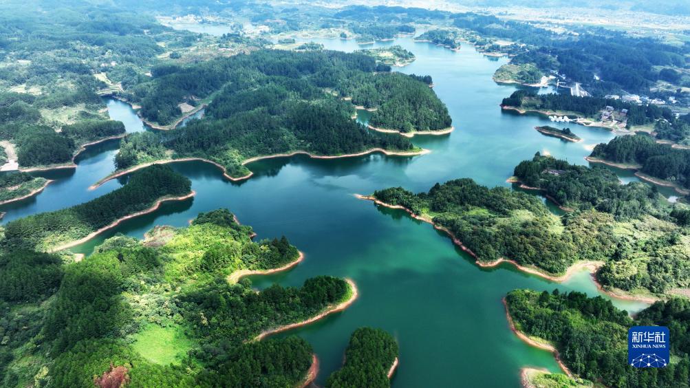 9月6日拍攝的貴州省黔東南苗族侗族自治州黃平縣舊州鎮(zhèn)?陽湖畔美景(無人機(jī)照片)。