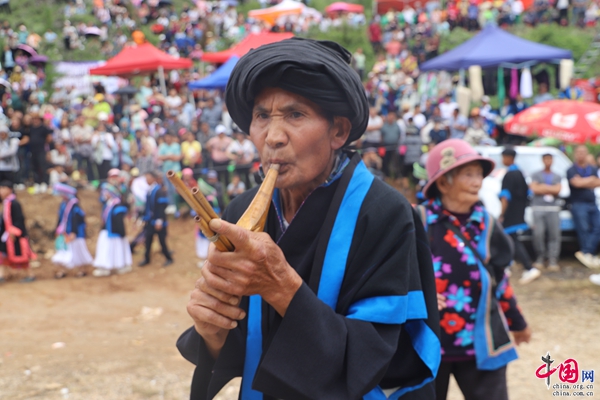 蔡月生老人是阿旺彝族蘆笙傳承人,今年70余歲的他耳聰目明,爬起山來仍然健步如飛。他除了種好自己的莊稼、放好自己的牛羊外,一心撲在蘆笙傳承上。他把自己的孫子選為蘆笙傳承接班人,早晚手把手教孫子演奏蘆笙。同時,村里一大批年輕人也跟老人學(xué)蘆笙,他從不收學(xué)費,都是免費傳授。如今,鎮(zhèn)里、村里無論舉行任何大型文藝活動,老人總帶上他的“蘆笙戲班子”,參加演出。蔡月生老人的蘆笙舞技藝精湛,演奏獨特,邊吹蘆笙邊舞蹈,或跳或躍、或滾或臥,活脫脫一個年輕人,給人耳目一新的感覺。老人說:“彝族蘆笙舞是彝族文化精品,我生為蘆笙舞、死為蘆笙舞,希望孫子這一輩年輕人能夠?qū)W好、學(xué)精,莫在我手中失傳。”