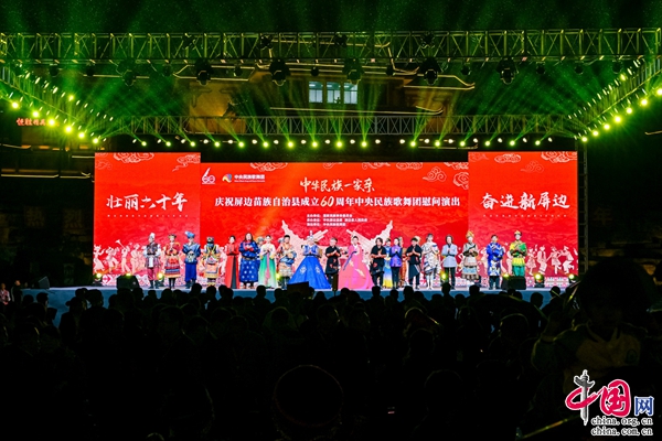 歡歌慶縣慶,民族一家親!10月20日,由國家民族宗教事務(wù)委員會主辦,中共屏邊縣委、屏邊縣人民政府承辦的“中華民族一家親”慶祝屏邊苗族自治縣成立60周年中央民族歌舞團慰問演出在屏邊大圍山民族廣場舉行,為屏邊民眾和外來游客獻上一場精彩紛呈的歌舞盛宴。