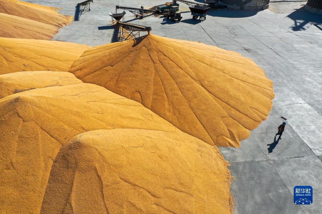 10月15日,在內(nèi)蒙古通遼市科爾沁左翼中旗腰林毛都鎮(zhèn)一家“糧食銀行”,經(jīng)過(guò)烘干的玉米堆積如山。