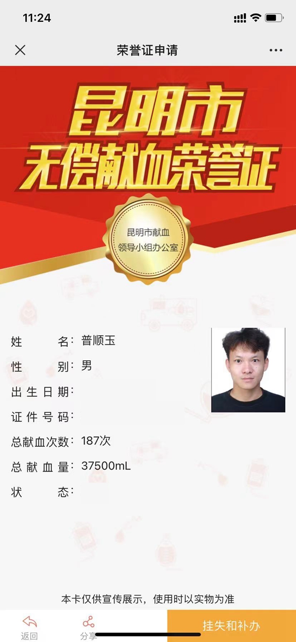 普順玉每次到云南昆明血液中心,都需要空出一個上午或者一個下午的時間,但他不覺得麻煩,在普順玉積極地影響下,他身邊的朋友也通過他了解到獻血的意義,開始跟著他一起到云南昆明血液中心獻血,普順玉開心地說:“到現(xiàn)在,他大概也獻了30次了。在我看來,參與公益事業(yè)不需要有多大的能力或者資源,關(guān)鍵在于你的內(nèi)心驅(qū)動力和愿望。每個人都可以在自己的領(lǐng)域內(nèi),以自己的方式為社會作出貢獻。收到短信通知我獲得了全國無償獻血奉獻獎金獎的時候,我真的很開心,因為我自己也是一個黨員,我也會一直堅持下去,希望能幫助更多的人,這個事情對我來說很有意義,也希望更多人加入我們,共同點亮希望的火花。”(馬琛)