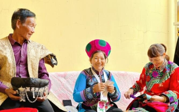 (彝繡傳承人在農(nóng)閑時刺繡)