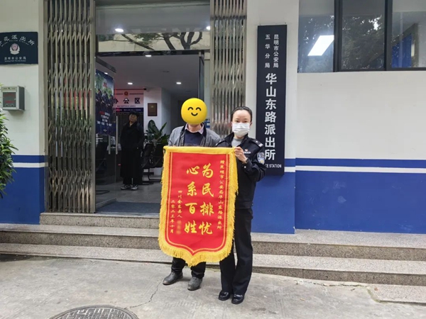 一面鮮紅的錦旗,一聲面對(duì)面的感謝,是人民群眾對(duì)公安工作的充分肯定,是全體廣大民輔警不竭動(dòng)力。一部失而復(fù)得的手機(jī)看似微不足道,但這正是龍翔派出所全體民輔警堅(jiān)持人民至上的真實(shí)寫照。(昆明市公安局五華分局供稿)